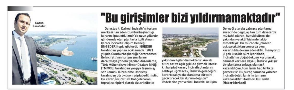 İNCİRALTI YATIRIMI , İNCİRALTI PLANLARI , İNGEDER , TAYFUN KARABULUT