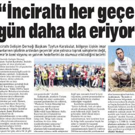 İnciraltı Gelişim Derneğimiz görstermiş olduğu faliyetler neticesinde kazanan İzmir ve halkı olacak. Milyarlarca yatırım yeni iş kolları ve ticaret hacmi Türkiyenin Turizim başkenti olma fırsatı ve daha bir çok yenilik. Yeni Bir İzmir İçin İNDEGER